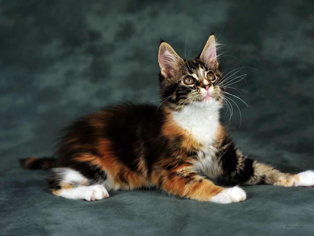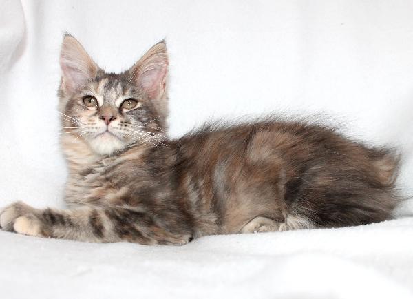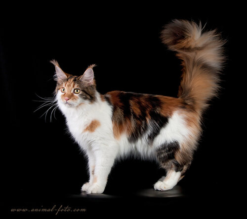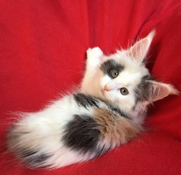 Such cats have a multi-colored coat, the spots are scattered in a chaotic manner throughout the body, mostly black, white and brown. Most often the Maine Coon cat has this color; all this happens on the gene level when crossed.