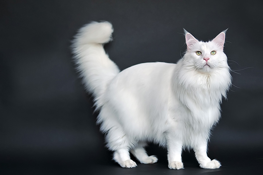 Since the Maine Coon is too long and thick wool, it requires careful and constant care. So that the wool is not confused, it should be combed; for this purpose, special combs with rounded teeth are used, this is necessary not to injure the delicate skin of the animal. Cats love to wash and are neutral to water, so they can be easily washed. The ears of these animals are a weak spot, they should be given special attention, they should be cleaned with a soft cloth, the inner surface of the sinks should have a pink tint.