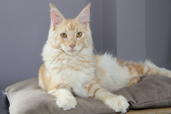- purely cream-colored cats do not occur in Maine Coons, that is, there are still visible pigment spots on the fur.