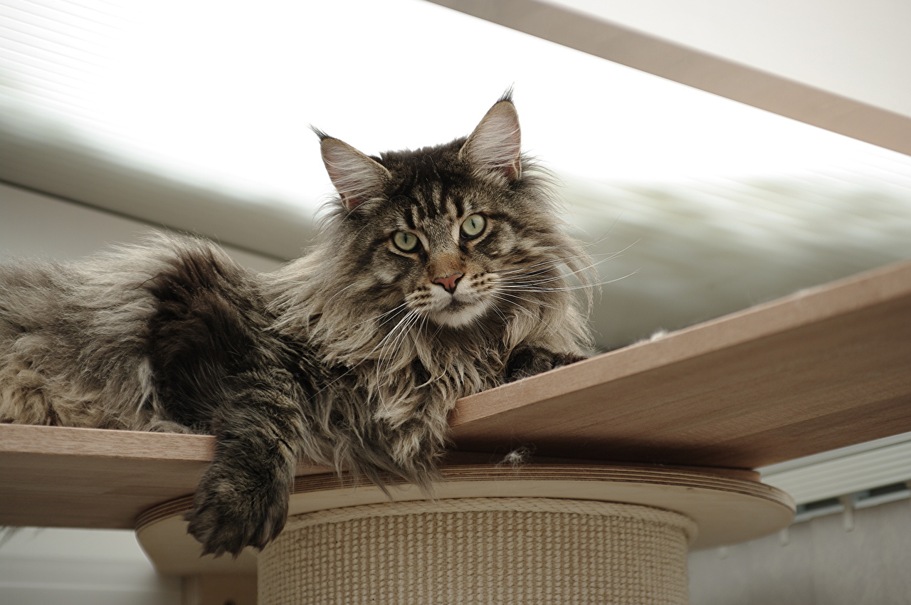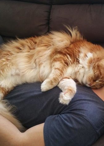 Big cats are often called cat-dogs, as individuals are perfectly trainable, can perform simple commands. Compared with other members of the family, the Maine Coons sleep very little - on average, they spend 6-10 hours sleeping per day. As a rule, their inquisitive, playful and active temper of a cat retain until very old age, therefore even an adult cat, as well as a small one, will prefer an active passive rest.