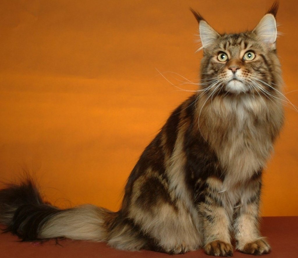 Maine Coons are the largest of the cat breeds that have been domesticated by humans. In addition to the characteristic tassels on the ears, A mandatory feature of the appearance of cats is a wool collar that captures the neck and chest. Due to such a “frill”, animals practically do not visualize the overflow of the thoracic region into the neck.