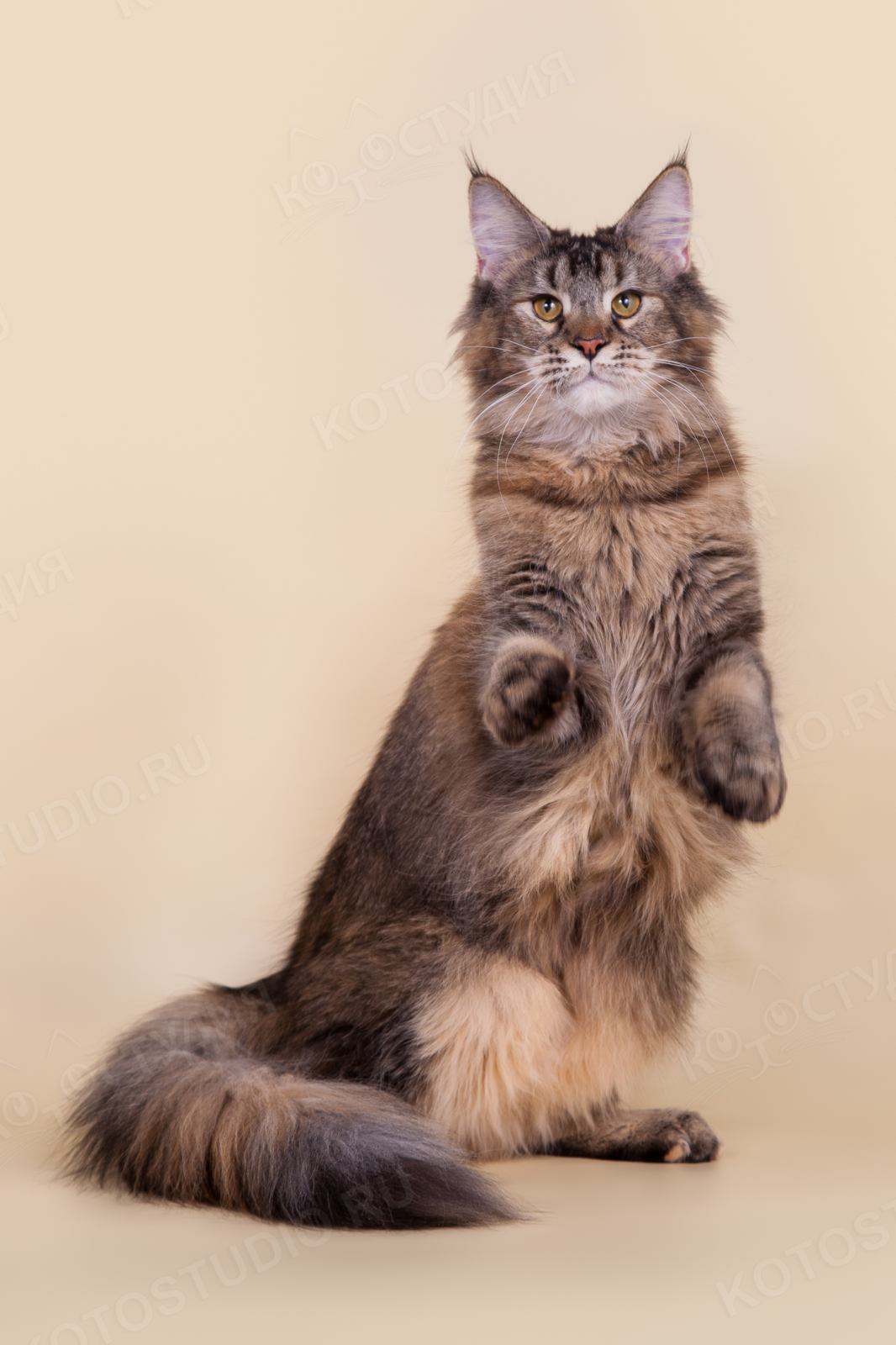 The official version regarding the origin of cats, which breeders adhere to, is the natural evolution of animals. As for the external characteristics, the Maine Coon cats acquired them due to the natural process of adaptation to the habitat conditions in the harsh climate.