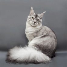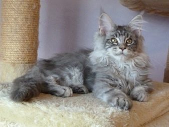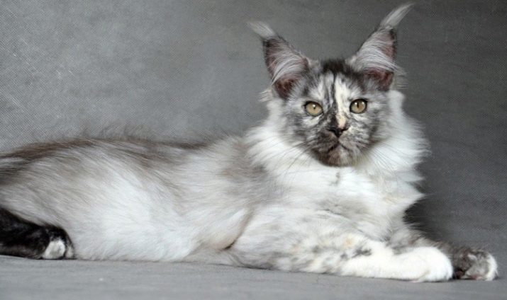 Separately, this group distinguishes Maines with an exquisite silver color. It can be so light and light that it is easy to confuse such individuals with whites, especially in childhood. Traditionally, kittens are distinguished by the color of the iris. Snow-white animals have blue eyes, while silver ones are green-eyed beauties.