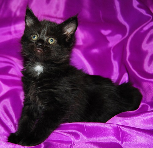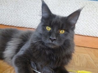 Among the individuals with the color "tabby" can be distinguished black cats. This is not a mistake - black under it always has residual strips (“tabby”). They are especially noticeable in kittens. It seems that the thinnest black veil is draped over the fur with a pattern. As the individual grows older, the pattern appears less and less, the wool becomes a noble black color. However, the latter is largely the merit of the owner of the Maine Coon.