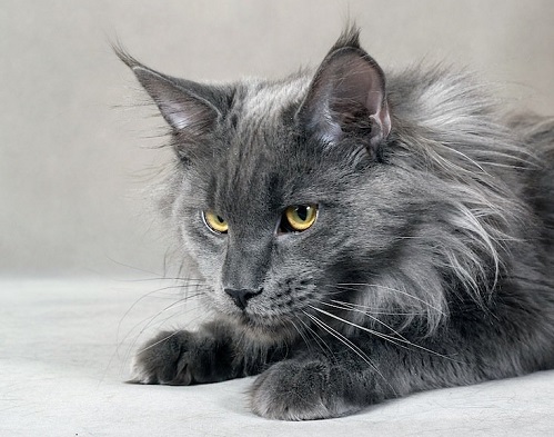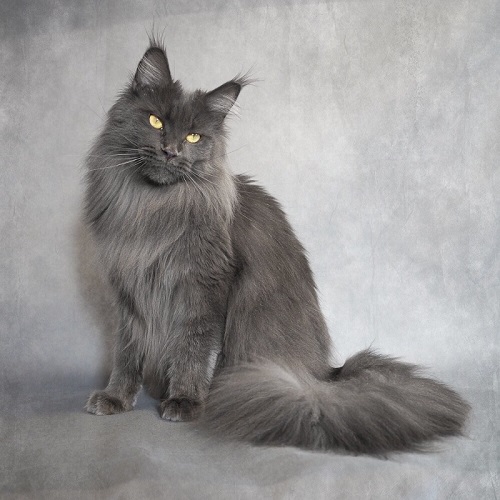 Widespread in the West have received blue solidi. In our country they are sometimes mistakenly called gray, however, the difference between blue, smoky and silver cats is colossal. Connoisseurs' delight is caused by the color “blue smoke”, in which Maine does not have a pronounced pattern, however, its hair includes several variations of colors - from silver to graphite.