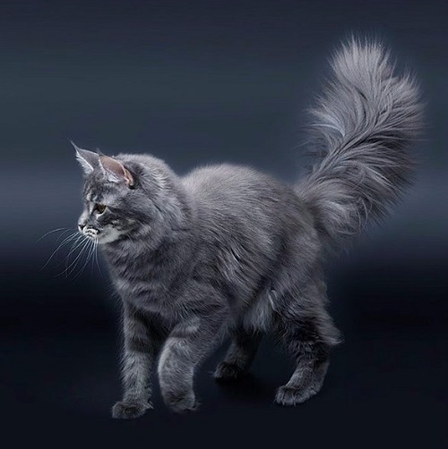 Smoky Maine Coons are very popular and look very impressive. With this color, each cat's hair has a white base and a tip with a pigment. And the color can have different intensity from darker smoky to very light silver. For example, black smoke cats have a strongly pronounced shade of fur. The intensity of the color depends on what part of the individual's hair is dyed: