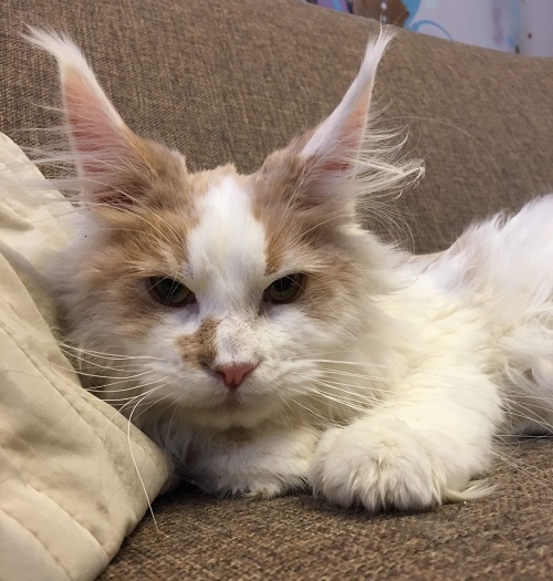 - "Van" - almost white Maine with colored spots on the head and tail;