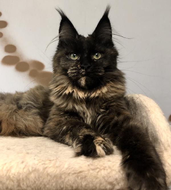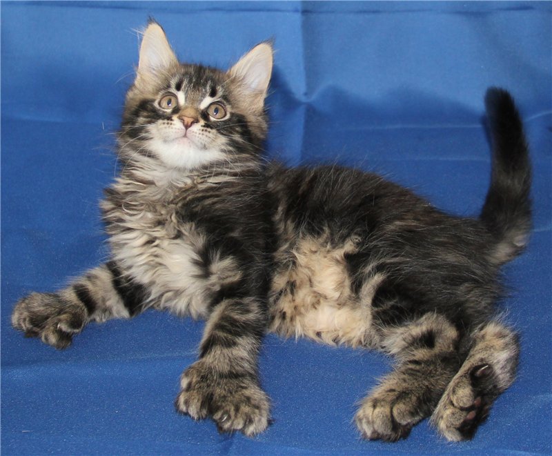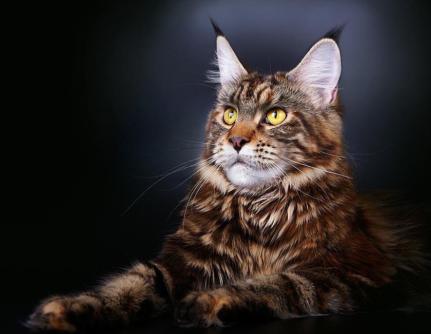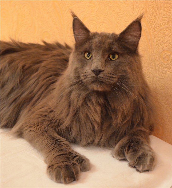 Maine-coons appeared in Europe only in the 70s, and since then constant selection work has been carried out. It is thanks to the hard work that new colors and some interesting features have appeared. An elongated muzzle, slanted eyes, a long body and thick hair are all characteristic features of the European Maine Coon.
