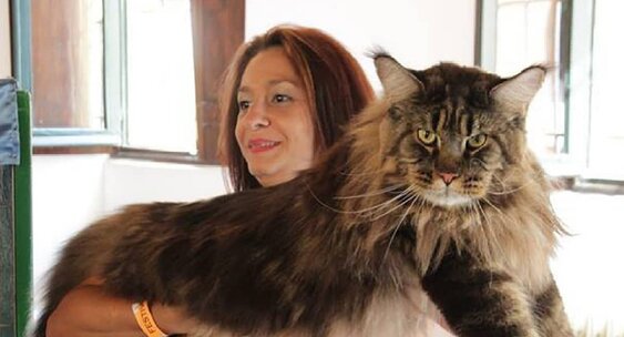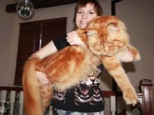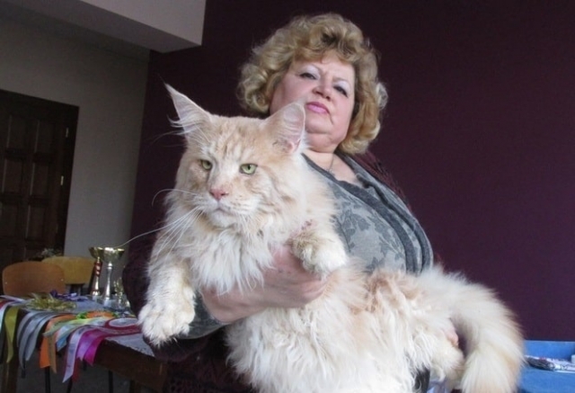 Recently, the network appeared news about a huge cat from Melitopol (Ukraine): he bears the sonorous name of Walter de Lanes, and the terrific 20 kg weight declared at 2 years of age makes this home “lion” the biggest and heaviest cat in the world: its owner is going to set a record and press a competitor, who so far wears this title, but is far behind in weight. Walter is affectionate character, loves to play with children, with pleasure performs the basic "dog" commands. Unfortunately, it was not possible to find information about the length of this amazing Maine Coon.