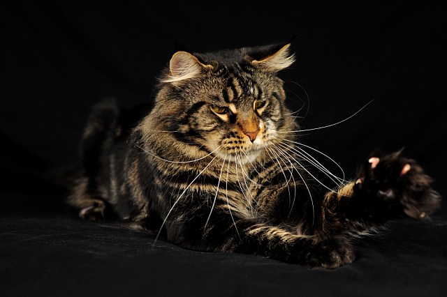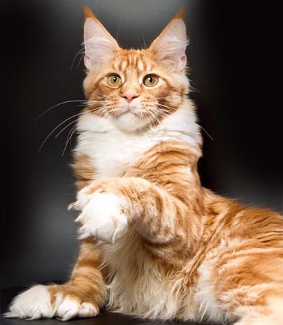 Characteristic tassels on the ears, fluffy tail and striped color gave rise to legends about the origin of the Maine Coon from the raccoon or from the lynx, but such hypotheses have no scientific basis.