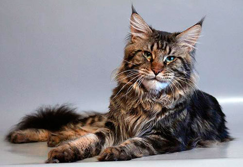 The name of this wonderful breed acquired from the state of Maine in the north-eastern United States. North American longhair or Maine Coon belongs to the breeds of aboriginal origin, that is, it appeared by natural crossing. According to one version, the Vikings' ships brought long-haired cats from Northern Europe, and in the forests of the American continent there lived short-haired, not yet domesticated wild cats.