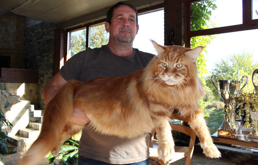 The desire for the pet to make a stunning impression on others with its size is understandable. But the race for records should not be put at the forefront. Overfeeding a cat, trying to achieve an impressive weight is not only harmful, but also dangerous to his life. The cat is able to quickly gain heavy weight after castration, so you need to monitor the physical activity of such a Maine Coon. First of all, the animal should receive full care, love and affection.