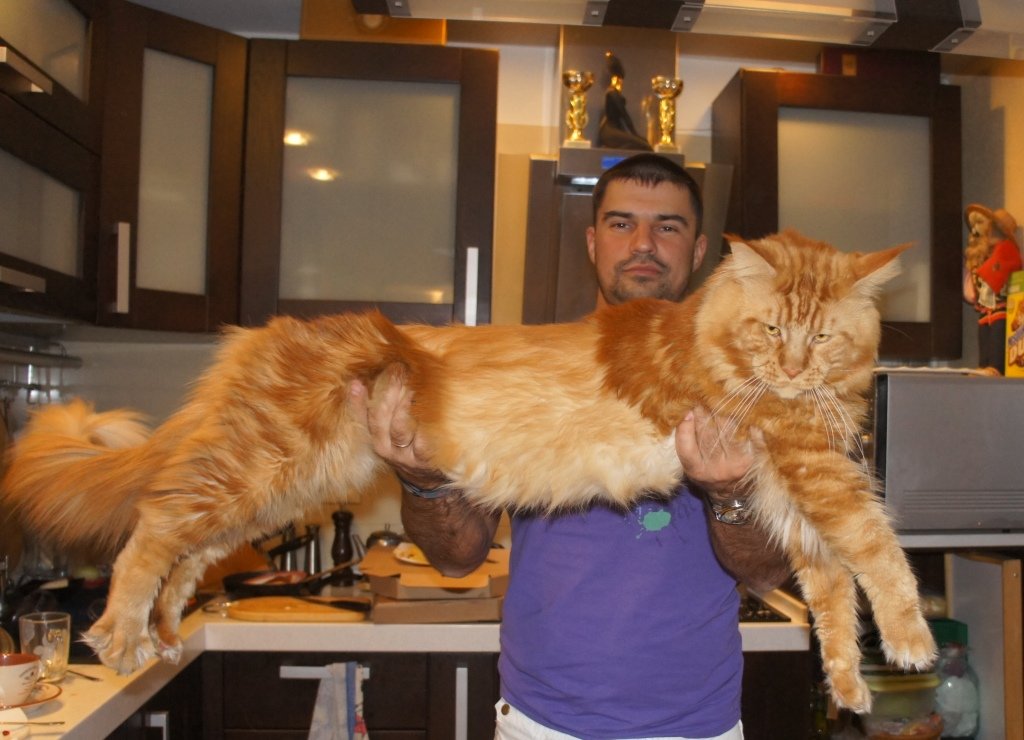 According to the owners of the wonderful Maine Coon Lobsterwho also lives in Australia, his well-thought-out diet, with the inclusion of delicacy fresh kangaroo meat, caused excellent external data, 10 kg of weight already at one year old and 120 cm from nose to tip of tail.