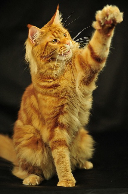 Surprisingly, it is precisely at Maine Coons that a mutation is often found - polydactyly (multipaw). Standard volumetric round legs at the same time become even wider. Historically, for Maine cats, this was an advantage in terms of movement in deep snow and hard crust. This gene is dominant, therefore representatives with “redundant” fingers appear with polydact parents with high probability. According to sea belief, such cats bring good luck in a dangerous voyage.