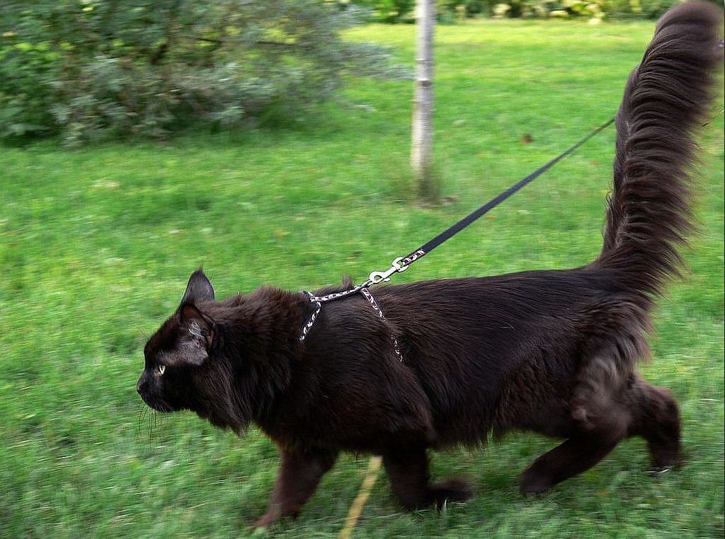 Maine Coons are curious cats. All that they see on the table or on the floor, they will try to tooth, after having sniffed. They often "feast on" the decorations of the hostess, stale bread and small details from the designer. With the same success they eat poison, walking on the street. Therefore, walking alone is forbidden for them.