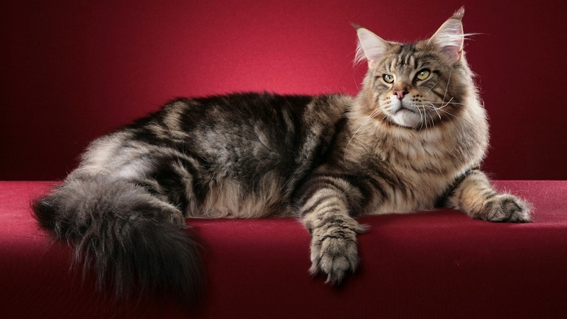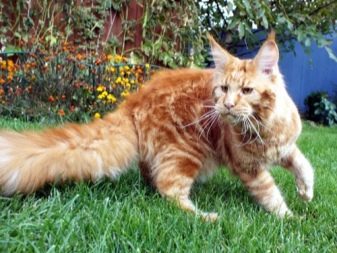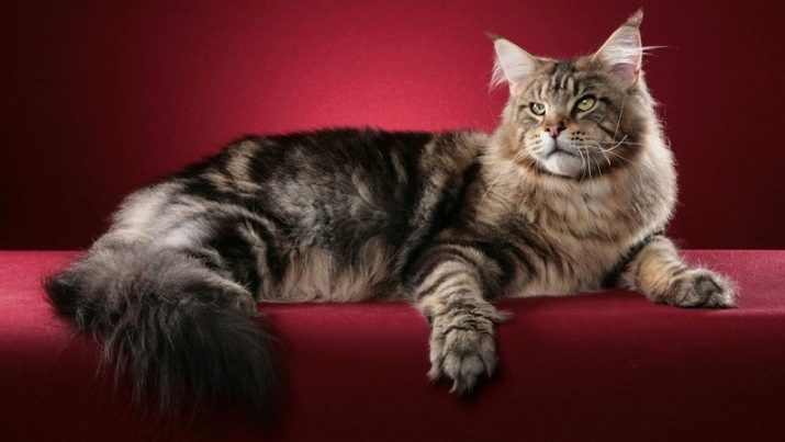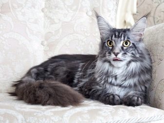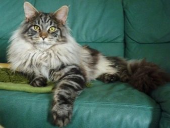 Maine Coon boasts thick hair, and it is not just thick and thick, but very soft. This cat has a furry collar-jabot, covering not only the neck, but also the breast. Longer hair grows on the tail, hind legs and abdomen. In addition, it is present between the claws.