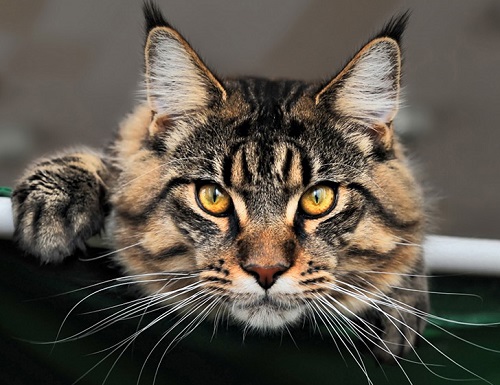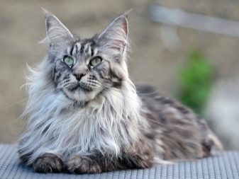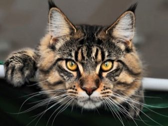 Maine Coon has a number of features that distinguish it from an ordinary relative. Appearance of this cat is more similar to wild animals. Their face remotely resembles the face of a panther, a look rather predatory and confident. This cat is solid, large, often with a rather stern look. At the same time, the eyes of a wild cat are slightly slanting, which is not the case of a pet: its eyes are round.