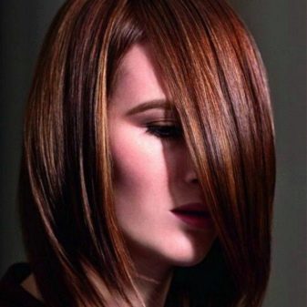 For owners of black hair, it is worthwhile to dwell on red shades, women with chocolate head are better to use light-brown tones, and girls with chestnut curls are matte and milk-blond. Red-haired girls rarely resort to highlighting, because even without staining they look spectacular and bright.