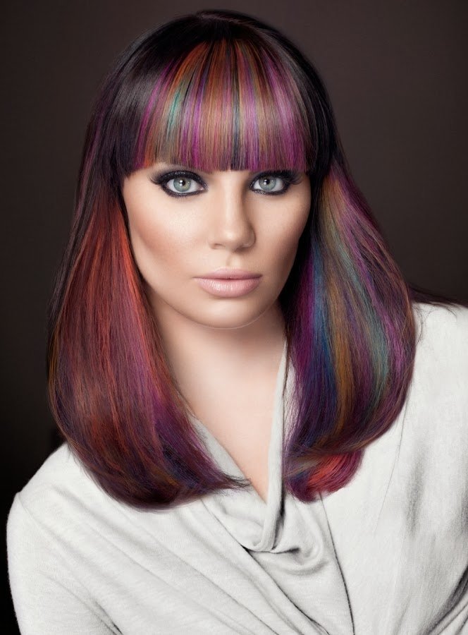 This highlighting is suitable for bold and creative girls who love beauty experiments and are always happy to try something new. Here they use the most daring bright colors, resort to contrasts and any other non-standard solutions. As a rule, such highlighting is based on the use of ammonia-free dyes, because the coloring is short-lived and is washed out for about a month. This method of coloring is optimal for creating game bows on vacation, as well as during the period of art projects and other creative events.