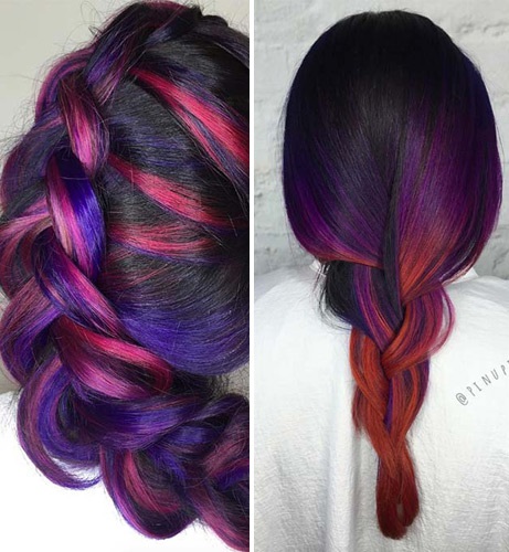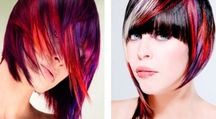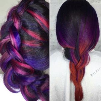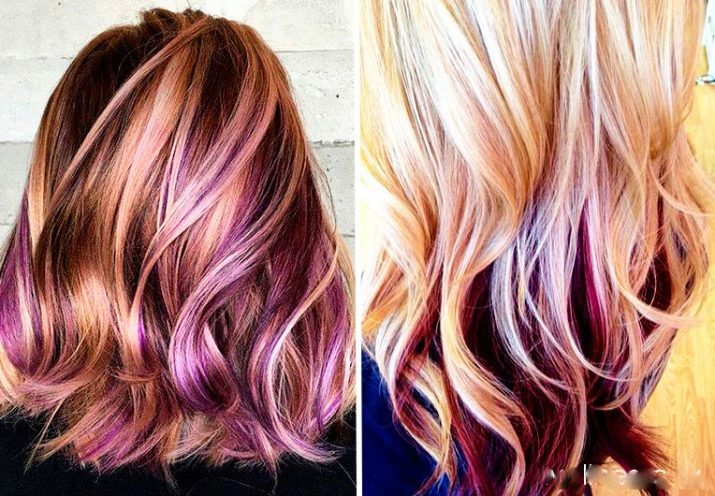 Extreme lovers can safely choose shades of rose and violet - this is a very playful variation. In addition, these colors are a real hit of the season. It is not recommended to carry out such combinations on your own, entrust complex staining to a professional. Stylists recommend dark-haired young ladies to lighten the strands of the face. This technique will refresh you, make you look younger and brighter.
