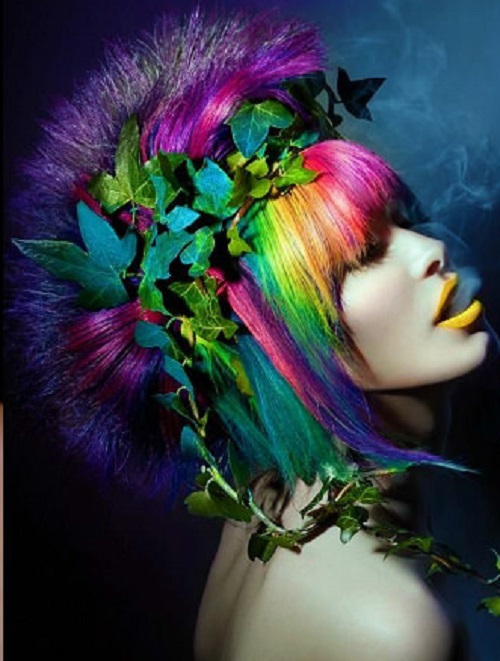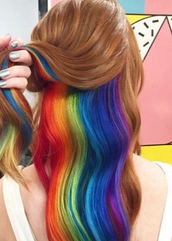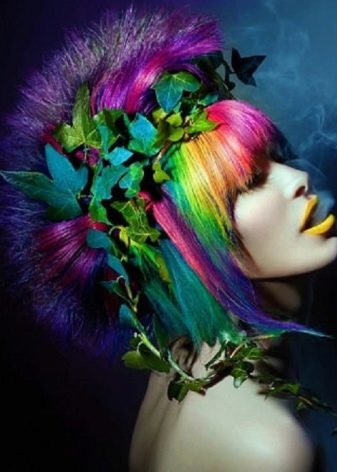 Color highlighting can be multicolored. In contrast to the standard, in this case, separate strands stand out, lightened and painted. The number of shades used in multi-color highlighting is unlimited. The choice of scale and tint is also diverse, you can create an extravagant multi-colored image, neutral or elegant. There are the following types of highlighting:
