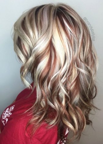 A naturally rich palette of shades - natural and vivid gamuts - suits the naturally-haired girls. The advantages of blond curls are that they do not require bleaching, respectively, the strands do not deteriorate, and the time costs are reduced. On a light background advantageously, the following options look spectacular: