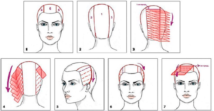 - divide strands into several zones depending on the technology of dyeing, from 3 to 8; the simplest option is the occipital and two lateral ones;