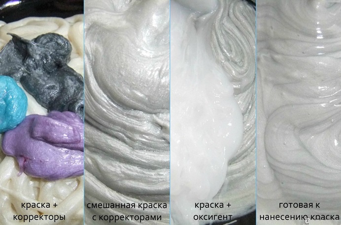 - bright tone You can mute with the help of a mixture of corrector without color and oxygenant.
