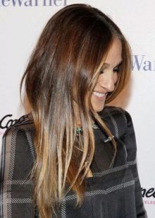 For ladies who are worried about the existing gray hair, this type of highlighting will be enjoyed. This is due to the fact that it does not have to paint over it in advance. An experienced master will be able to work with the strands in such a way that the gray does not prove to be superfluous. On the contrary, gray-haired strands will be able to assist in maintaining the most natural effect.