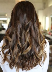 Effectively on the ladies with long curls looks highlighting, which provides for almost black top, smoothly turning into the bottom of a wheat shade.