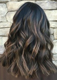 If a young lady by nature has beautiful dark hair, then this is no reason to abandon the Hollywood highlighting. This type of staining here will come in handy. You can play in expressive color contrasts. The natural basal zone and the maximum clarified ends will look good.