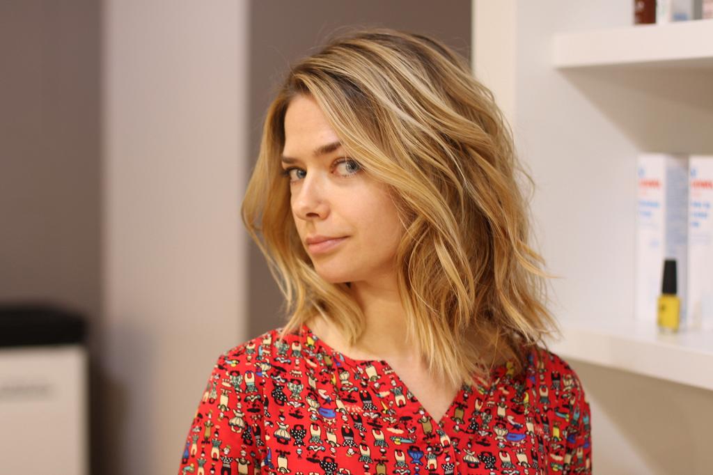 - Apply bleach to hair. In the case of Hollywood highlighting, this is required to be done not along the entire length of the curls, but with a small indentation (about 3-5 cm) from the roots. Try to distribute the paint quickly.