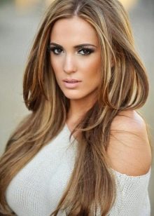 In modern style, there are many types and techniques of highlighting for long brown hair, differing in the way of performing, the choice of colors and the location of colored areas. It is worth more to consider the most popular of them.