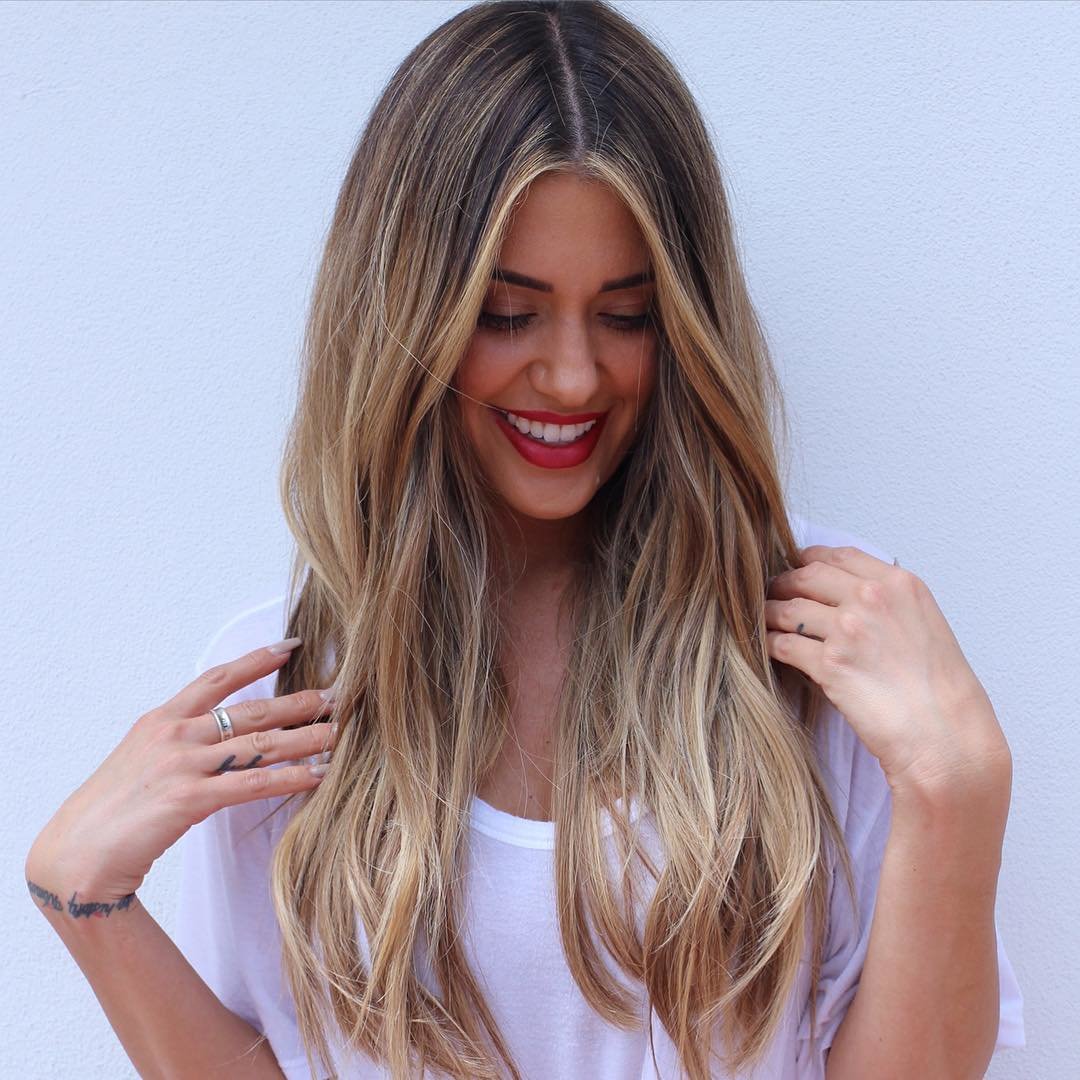 This type of highlighting allows you to shade the main hair color with several similar or contrasting tones. The popularity of an ombra is due not only to its many variations, but also because relatively inexpensive method. Strands are not painted over the entire length, but only on the tips, without affecting the roots, and causes minimum damage. This technique is great for long natural light blond and dark blond hair (“natural ombre”).