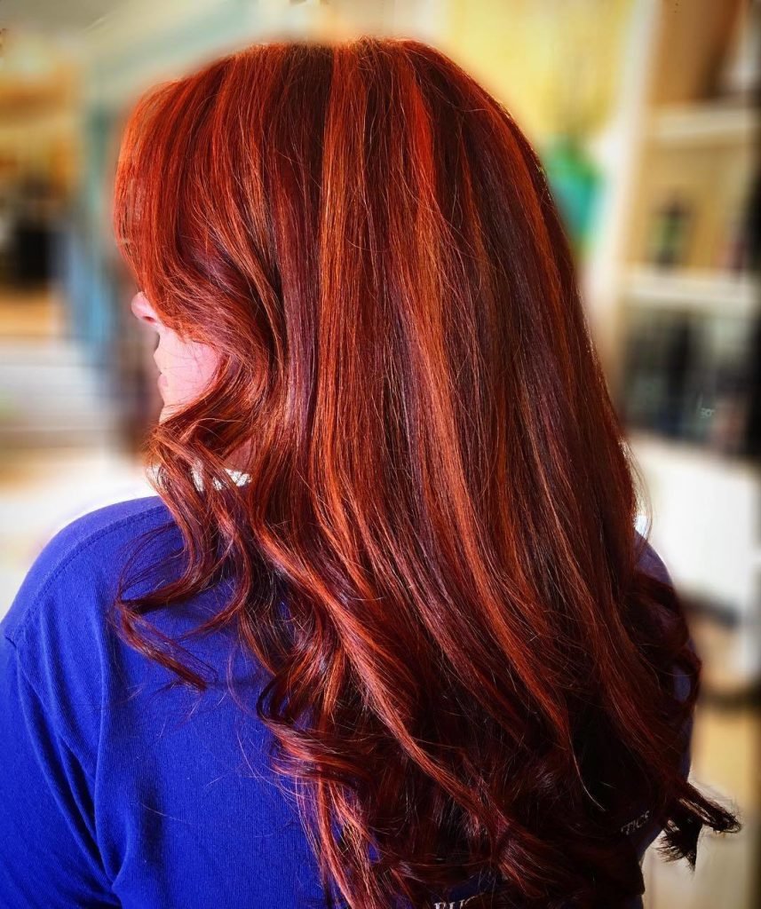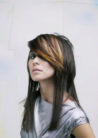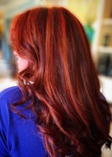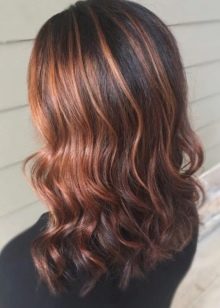 Light in dark shades of hair will be able to bring bright red strands. This highlighting will not only refresh the image, but also give the fragile hair pomp and shine.