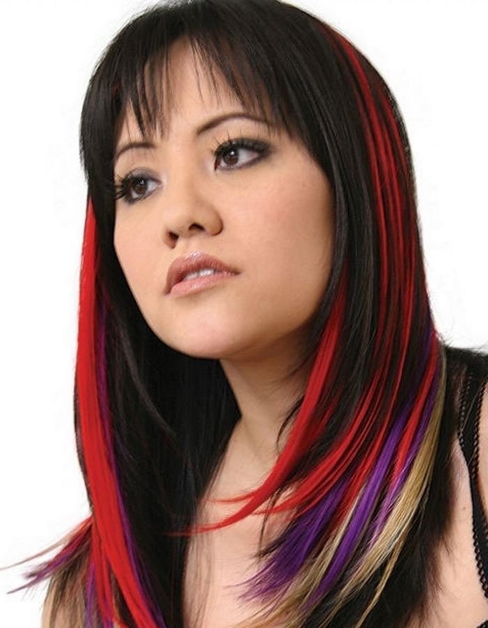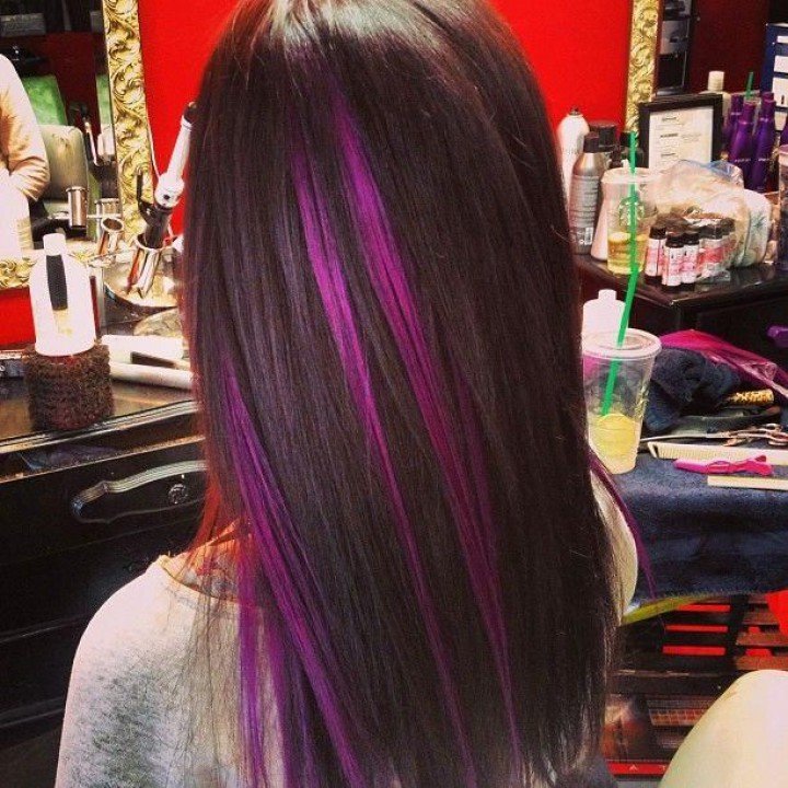 Extreme lovers can stay on eggplant, red and even deep pink color. After all, hair as dark as night is compatible with almost all bright colors, so you can let your imagination run wild.