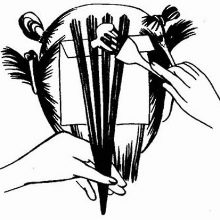 - On the back of the head should dissolve one part of the hair and separate one strand.