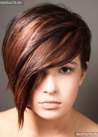 - Veil technique. In this case, small strands of hair are painted on the top of the head. This type of coloring allows you to turn lifeless hair into a voluminous hairstyle.