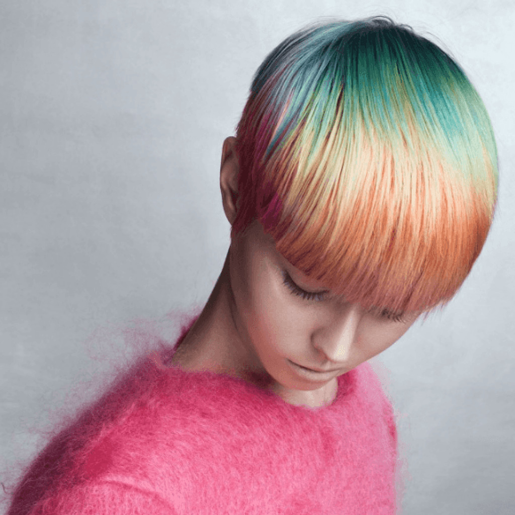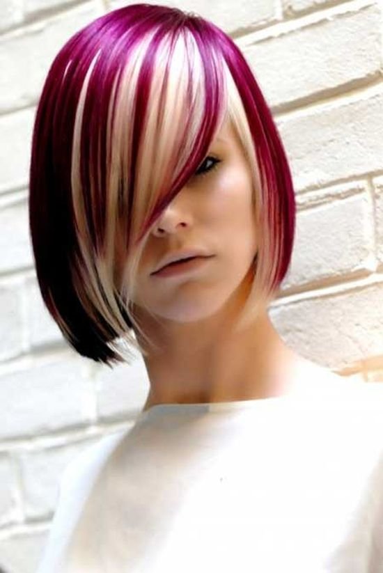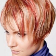 If you need to create a bright, bold image, it is better to use coloring This coloring on light brown hair is great for a short haircut in the style of vamp. So, hair can be dyed not only in natural bright red or red shades, but also add strands of pink, blue and purple flowers.