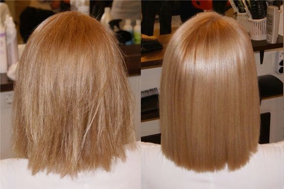 - So, jagged strands with large irregular indents can be corrected by repeated procedure. In this case, the composition is applied only to those areas of hair where there is not enough color.