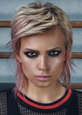 In this original version, it is permissible to use blue, pink, green and other similar shades on the hair. Coloring can be done only on one or two strands or on most of the head. Sometimes only the roots are stained separately, only the tips or curls in a chaotic manner. There are a lot of variants of this avant-garde highlighting. Especially effectively and playfully, this color is worn on short asymmetrical haircuts.
