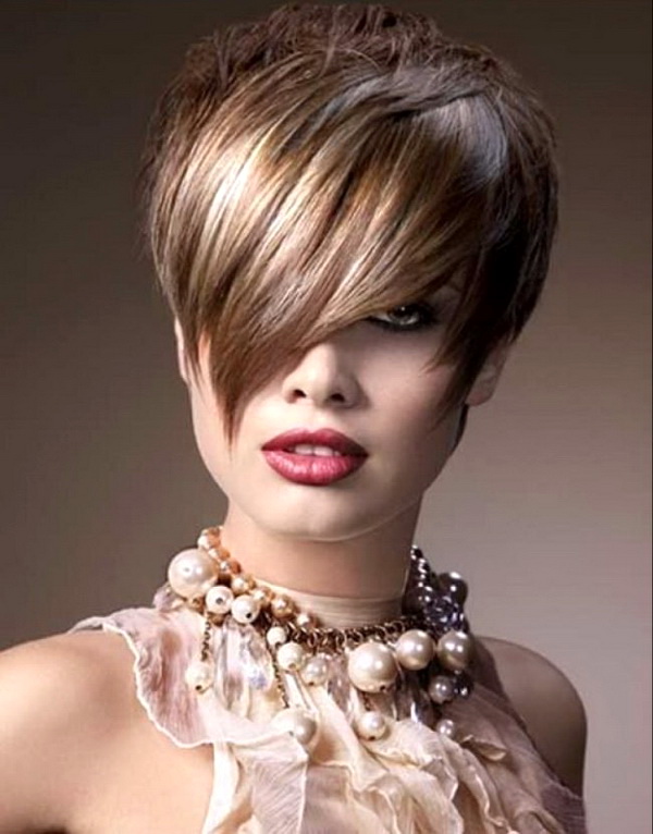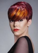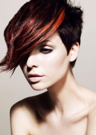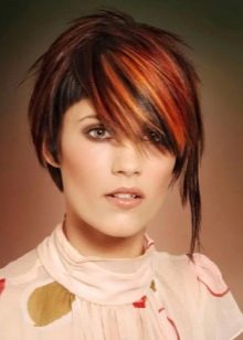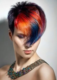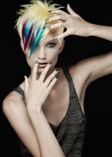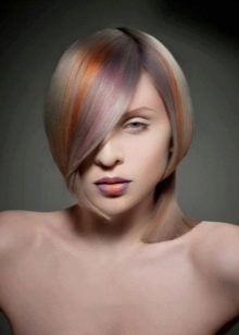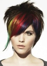 Very interesting and bright on short haircuts looks creative coloring of individual strands. However, we must bear in mind that it is suitable only for young girls who love experiments. For a woman of the age such a decision is hardly suitable, especially if she usually adheres to a strict official style in the image.