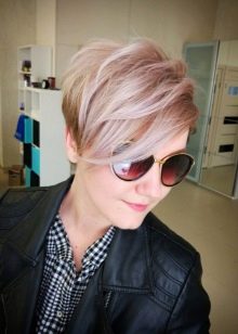- Bold and original on such short hair will look ashy highlights. For example, it may be trendy gray shades, but it is desirable to refer to them only for women who, by nature, have light-colored skin.