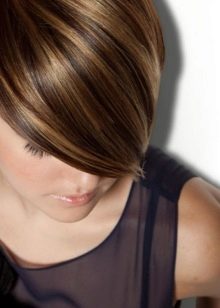 Such ultrafashionable highlighting is also called California. He was so named because of the fact that it is often this decision that many Hollywood actresses turn to. Such staining demonstrates on a short head of hair. delicate tint play as close as possible to the base color. The roots, as a rule, with this type of highlighting are darker, and the tips are light. As a result, the effect is created as if the strands faded under the influence of direct sunlight.