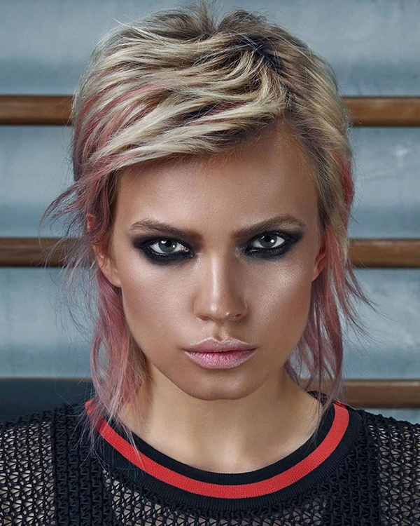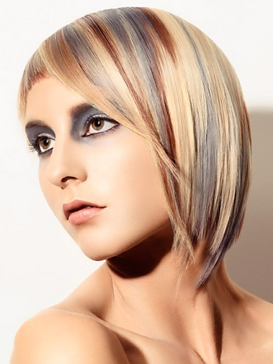 Such young-fashioned solutions are most often used by young girls who are not afraid of experiments in images. Young people like to stand out from the crowd, surprise their surroundings with a daring and bold appearance.. In achieving these goals, eccentric highlighting is ideal. It looks great on short hair.