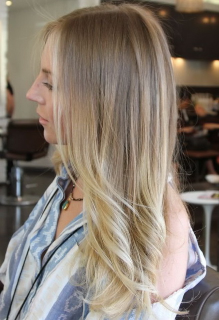 The entire mass of hair is subjected to stretching of color from darker (blond) roots to light (sometimes almost blond) tips. California highlighting is very close to the ombre technique (the mentioned color stretching after 3-4 tones), but unlike the latter, it has no clear boundaries between tones and semitones.