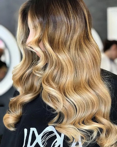Venetian technique gives the same effect of sun-bleached hair, but already on darker hair. Amber, cognac and coffee shades are added to the dark blond hair.If the skin color is warm, then it can be caramel, honey colors.
