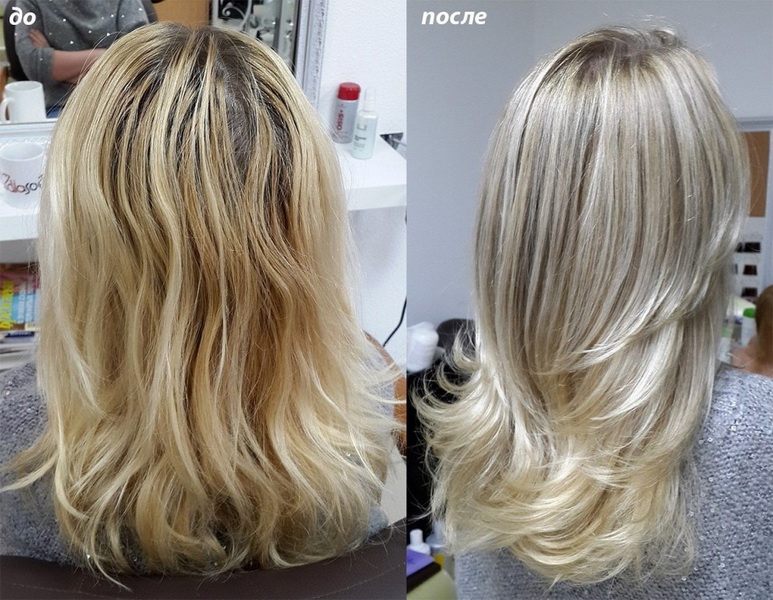 By the way, when dyeing dark blond hair, the color may turn out to be ugly, yellowish. In this case also resort to tinting. It can be both paint and tinting agent (foam, mask). No need to strive to put the last exclusively on the polished strands. Feel free to use all over your head, fair-haired strands just won't get painted, and the polished ones will get a noble subtone.