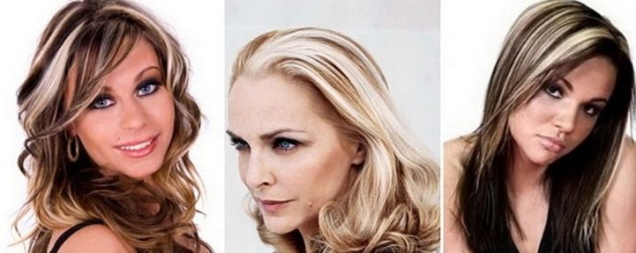 For lighter blond hair, it is better to select highlights in white (the bottom row in the photo). Particularly successful will be ivory, milk, platinum, cream. No less spectacular look in the color of caramel or cappuccino.