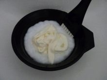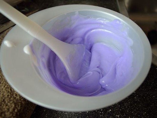 - First, prepare a mixture of clarifier in a plastic bowl.. It is strictly forbidden to use metal utensils and other accessories for painting, as this material reacts with an oxidizing agent.The girl should strictly follow the manufacturer's instructions on the ratio of powder and oxidizer. If cream paint is used, then it is immediately ready for use.